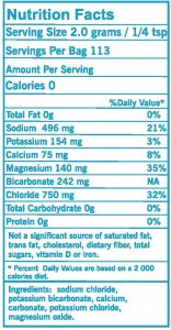 This salt is the bomb! Works great for rehydrating fdamily member who hates the usual orange or cherry yuck electrolyte drinks. Sprinkle the salt on anything and you'll get your 1/4 teastpoon a day of powerful electrolytes. Highly recommended and grateful I found it.